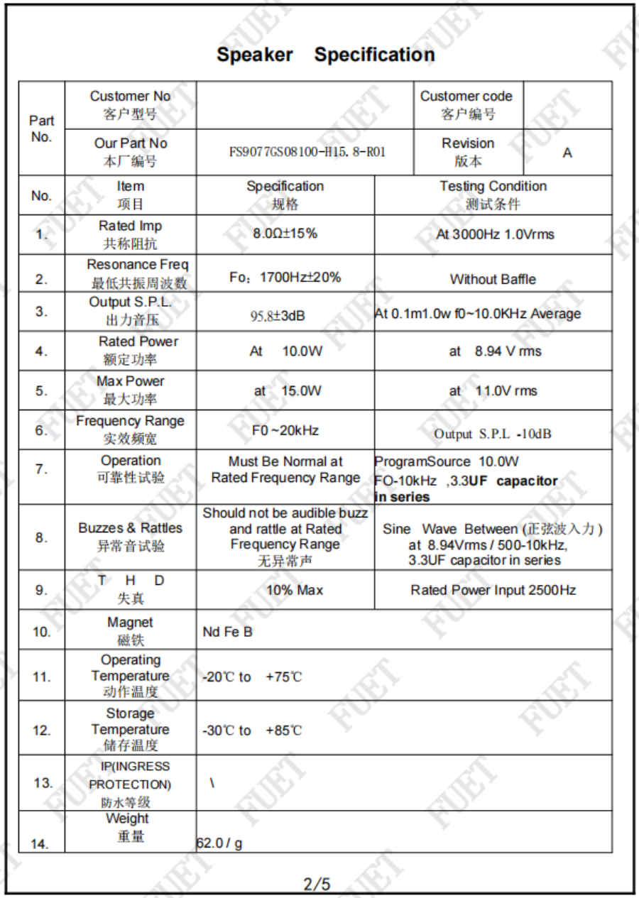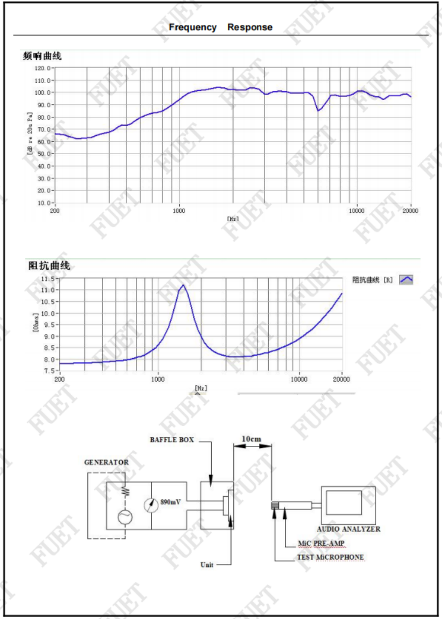 最低共振周波數(shù) Fo:1700Hz±20% Without Baffle